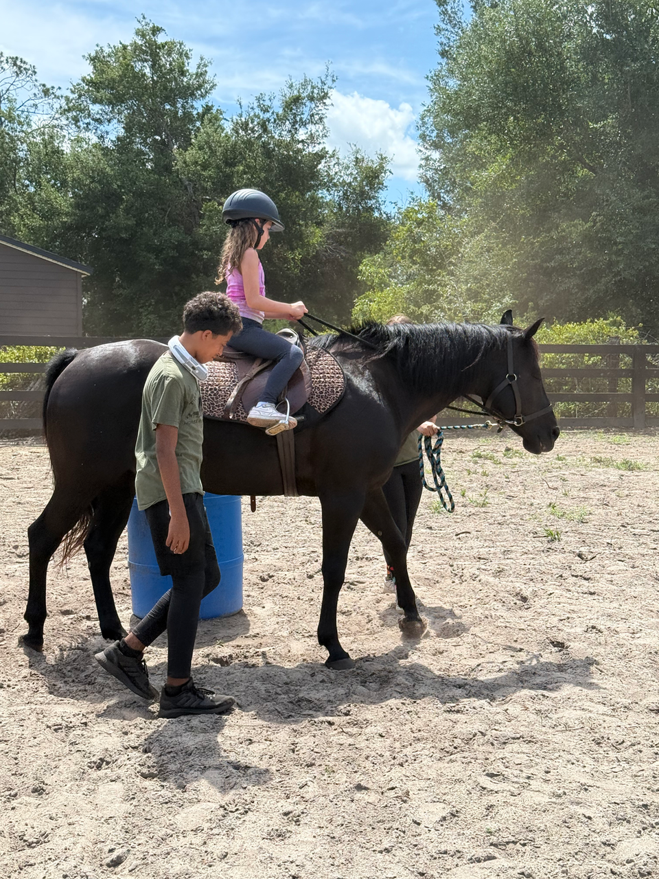 Campers entering 1st-7th grade may participate as campers at Timber Ranch Horse and Farm Camp. There is a 150 lb weight limit to ride.